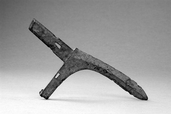 戈是先秦时期最为重要的一类武器,戈由戈头、柲、柲冒(帽)和钅尊 构成。考古上发现的戈绝大部分只剩金属的戈头,戈头一般由援、内、胡、阑组成。援是戈的长条形锋刃部分;内有纳入之意,是戈尾部横向伸出的部分,呈榫状;胡是指由援向下转折延长的弧形部分。并不是所有的戈都有胡,商代的戈就多为无胡戈。另外,商代晚期还流行一种銎内戈,内部呈銎孔状。内和援之间的凸起部分称阑。为防止钩啄时戈头脱落,又常在援、内之间设阑;内与胡上有穿(即孔眼),可以穿系皮条将戈头捆扎在上,保证戈头不至于在实战中脱落。