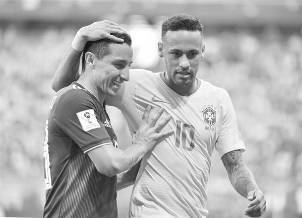 方便面发型染回了黑色,内马尔终于展现巨星风范,一射一传率领巴西队淘汰墨西哥队闯入世界杯八强。在冷风劲吹的俄罗斯,“足球王国”拒绝冷门、彰显底蕴。