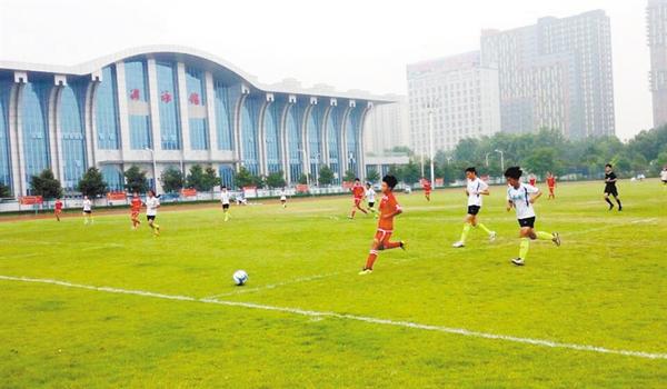 7月4日上午,在省十三运会青少年竞技组女子甲组足球赛A组第四轮比赛中,身穿红色球衣的洛阳队对阵身穿白色球衣的开封队。上半场比赛进行不到10分钟,洛阳队就接连攻破对方球门踢进4球。接下来,洛阳队一路高歌猛进,在上半场就以7:0的大比分锁定胜局。在下半场比赛中,开封队虽然奋力拼搏,无奈技不如人,仍一球未进。最终,洛阳队以8∶0的大比分狂扫开封队。图为比赛现场。记者 张志新 摄