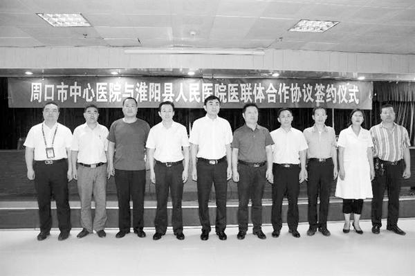 7月5日上午,周口市中心医院与淮阳县人民医院举行医联体合作签约仪式。双方的签约合作,能够实现医联互助、技术协作、资源共享、合作共赢的目的,更好地为淮阳县广大人民群众卫生健康保驾护航。通讯员 苏叶松 摄