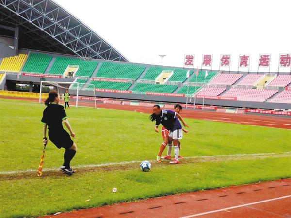当日的冠亚军争夺战在洛阳队和郑州队之间展开(如图)。上半场进行到8分钟时,身穿红色队服的洛阳队率先攻进1球。进行到30分钟时,身穿蓝色队服的郑州队也踢进1 球,将比分扳平。下半场开局后,双方先后各踢进1球,再次打成平手。在比赛最后15分钟时间里,洛阳队突然发起猛攻,抓住机会接连踢进两球。最终,洛阳队4∶2胜郑州队,夺得冠军。