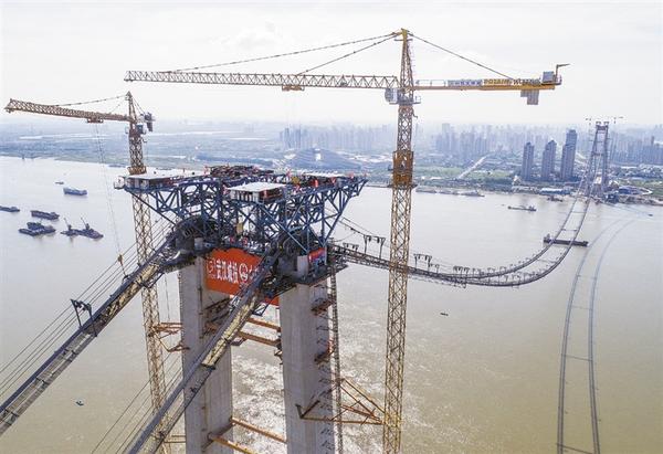 杨泗港长江大桥是一座双塔双层地锚式钢桁梁公路悬索桥,主跨1700米,一步跨越长江。建成后将成为世界上跨度最大的双层悬索桥。