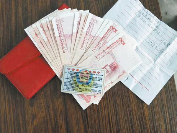 吴先生讲,他的朋友秦二伟在焦作辉县南寨镇工作。近日,秦二伟接到景区一游客捡来的钱包。该钱包内装有几千元现金,以及一张周口市公安局制的卡片,卡片的一面摘录有“公安部五条禁令”,另一面摘录的是 “周口市公安局关于加强内部管理、提高工作效率六条规定(摘要)”的内容。此外,钱包里还有半张稿纸,上面写有“水电由租房付清,物业费租房付清,不得损坏,保持整洁。刘永芳 2017年1月4日”的内容。该内容大概与租房有关,但语句不通顺,意思不明。