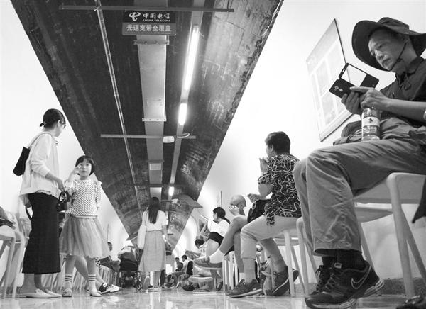 7月15日,人们在南京北极岩人防工程里纳凉休闲。
