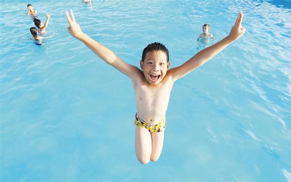7月15日,孩子们在广西柳州市融安县一家水上乐园戏水消暑。