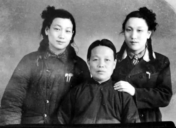 1950年,申凤梅(右)与母亲及妹妹申秀梅(著名越调演员,艺名“二梅”)合影留念。