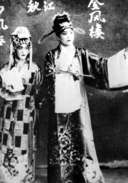 1953年,项城县越调剧团演出《秋江》,申凤梅(左)饰演陈妙常,饰演潘必正的是著名越调演员金凤楼。