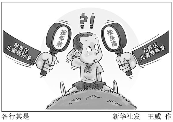 暑假出游高峰期,儿童票标准成为居民热议的话题。免票、半票还是全票的标准是身高还是年龄?身高线和年龄段怎么划分?记者调查发现,儿童票的衡量标准在各地“各行其是”,颇让消费者“摸不着头脑”。 新华社发 王威 作