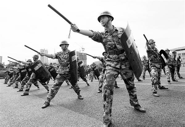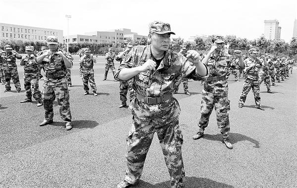 嘹亮的口号、整齐划一的步伐、擒敌拳、盾牌防身术……近日,骄阳似火,沈丘县人武部民兵应急连进行为期两周的正规化军事训练。