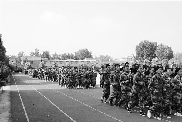 昨日,记者在周口高中看到,该校高一新生军训活动正在如火如荼进行中。据了解,在为期一周的军训活动中,该校新生将进行队列、跑步、军姿、搏击操等方面的训练。该活动旨在培养学生良好的行为习惯,磨练意志,强健体魄,树立团队意识、合作意识、安全意识,增强纪律意识,迈好高中第一步。记者 陈军强 摄