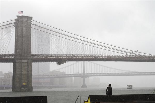 当地时间7月22日,在美国纽约,一名男子坐在雨中。