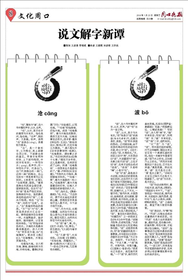“水”“皮”为“波”。“波”,即水面泛起的皱褶。对于这种解释,据说北宋王安石有一个津津乐道的发现。他在一本解字专著里写道:“波乃水之皮也,正如坡乃土之皮也。”然而苏东坡看到这个言论后,忍不住大笑道:“真是荒唐,照此说来,‘破’岂不是石之皮,‘滑’是水之骨了。”苏轼与王安石之辩只不过是文人相谑罢了。但“波”为水皮,是为定论。