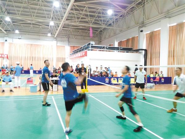 25日上午,男子毽球进攻组比赛迎来第二阶段的赛事。以A小组第一出线的洛阳队迎战以B小组第二出线的三门峡队(如图)。第一局,洛阳队凭借娴熟的技艺将三门峡队打得毫无招架之力,以21∶7获胜。第二局,洛阳队牢牢压制着三门峡队,以21∶9取胜,顺利挺进决赛。