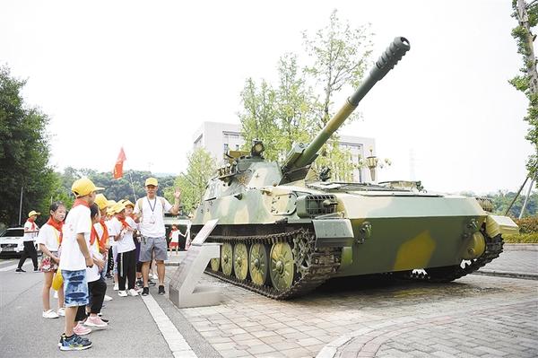 7月25日,孩子们在重庆市国防动员训练基地参观。