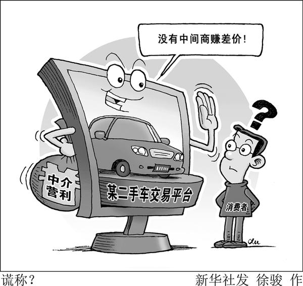 “新华视点”记者调查发现,瓜子网宣称的“没有中间商赚差价”与实际操作并不相符,其“包卖”服务从个人手中收车销售,同时还有中间商在平台上买卖车辆。 新华社发 徐骏 作