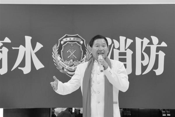 在八一建军节来临之际,商水县文艺志愿者来到县消防大队慰问演出。10多名文艺志愿者和消防官兵一起表演了歌曲《妻子》、音乐快板《十九大精神放光芒》、京剧《智取威虎山》等节目。现场欢声笑语,掌声不断,洋溢着浓浓的军民鱼水情。图为文艺志愿者在演唱歌曲《咱当兵的人》。