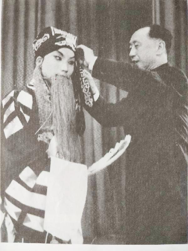 马连良为申凤梅扮戏。