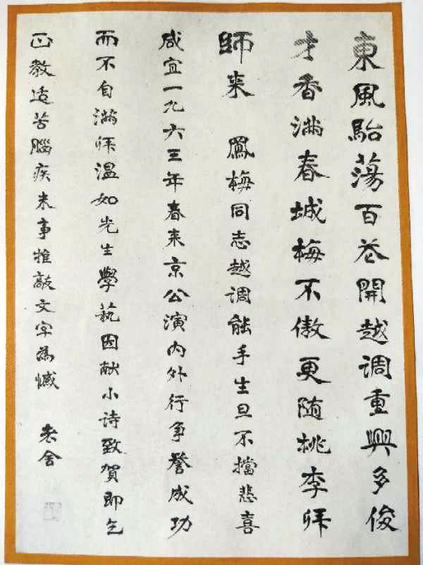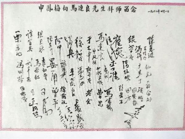 1963年,申凤梅拜师会上,首都文艺界40多位知名人士签名留念。其中有京剧表演艺术家马连良、袁世海、裘盛戎、张君秋、谭富英、马富禄、李慕良,著名电影表演艺术家赵丹、崔嵬,著名电影导演陈怀皑,京剧导演阿甲,相声大师侯宝林,著名作家老舍、曹禺、李准、于黑丁,原北京电影制片厂厂长汪洋等。