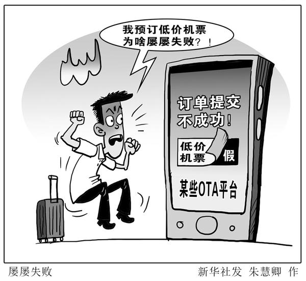 暑期已经过半,不少“飞行达人”开始着手预订国庆出游的“早鸟票”(提前预订享受更多优惠折扣的机票)。新华社记者近日调查发现,部分用户在一些OTA平台(线上旅行社)上反复订票不成功,错过了优惠票价甚至贻误了行程。