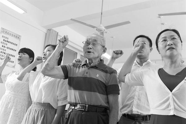 “今天是我的‘两岁生日’,我带来了一份特殊的礼物。”侯一风说。“两岁?您今年92岁了吧?”郸城县城关中心校会计赵永英一脸困惑。“今天是我的‘政治生日’。两年前的今天,我光荣地加入了中国共产党。在这神圣的日子里,我能不庆祝吗?”侯一风激动地说,“今天,我要交1000元特殊党费,为自己庆祝‘生日’。”这是7月26日上午,发生在郸城县城关中心校会计室里的动人一幕。