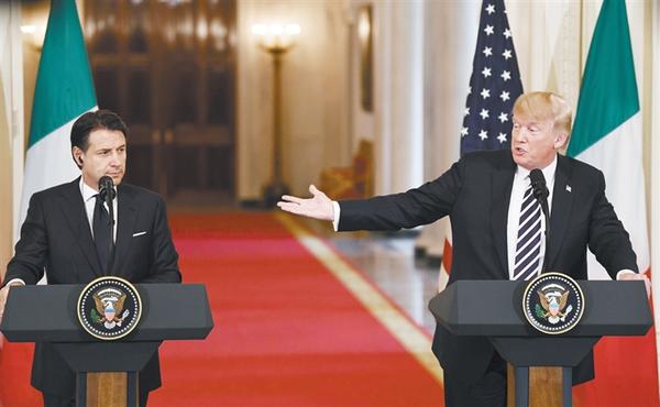 当地时间7月30日,在美国华盛顿白宫,美国总统特朗普(右)和意大利总理孔特出席联合新闻发布会。 美国总统特朗普30日在与到访的意大利总理孔特共同会见记者时表示,他愿意与伊朗领导人在“不设前提条件”的情况下会面。新华社记者 刘杰 摄
