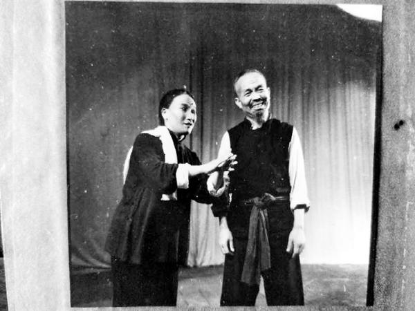 《卖箩筐》剧照:右为申凤梅(饰张大娘)、左为袁纯德(饰胡吉祥)