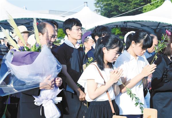 图为8月6日在日本广岛市和平纪念公园,人们悼念原子弹轰炸死难者。 新华社记者 马平 摄