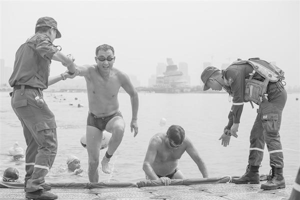 当日立秋,山东临沂第五届横渡沂河大奖赛开赛,来自济南、青岛、临沂、枣庄、日照等地的众多游泳爱好者参加角逐,以横渡沂河的方式倡导全民健身,喜迎秋季的到来。 新华社发