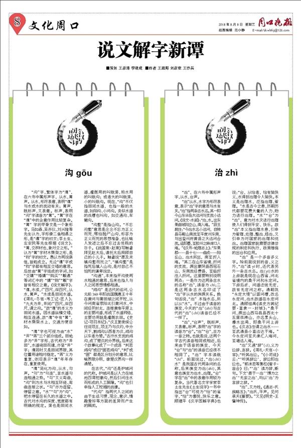 “溝”字也可视为由“水”“井”“再”三个部分组成。田地多为“井”字形,古代称为“井田”,水道绕田而建,亦呈“井”字;溝同时又是田间界限,其位置用途相对稳定。“再”义为重复、依旧表示“溝”年年存在,重复使用。