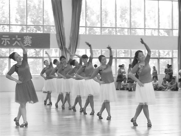启动仪式结束后,我市部分健身爱好者现场展演了广场健身操舞(如图),充分展示了我市全民健身活动的丰硕成果。