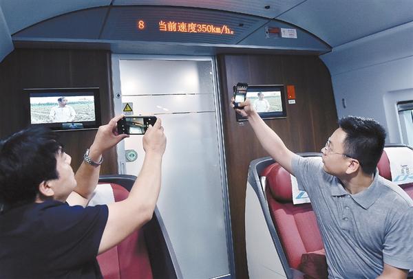 8月8日,在天津站至北京南站的复兴号动车组列车上,乘客用手机记录下列车时速。