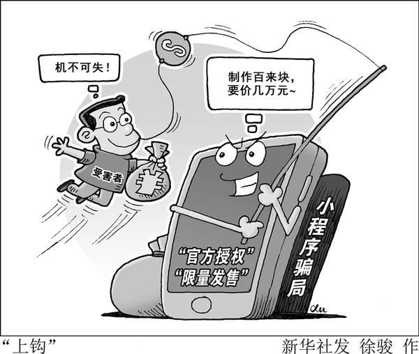 王先生所说的圈套,是指近期频频曝出的小程序骗局。记者调查发现,多地出现打着微信、支付宝官方授权名义的公司,利用“专家讲师”煽动群众高价购买“限量的”小程序服务。而实际上授权是假、限量也是假,几万块购买的小程序,市场价可能也就百来块钱。新华社发 徐骏 作