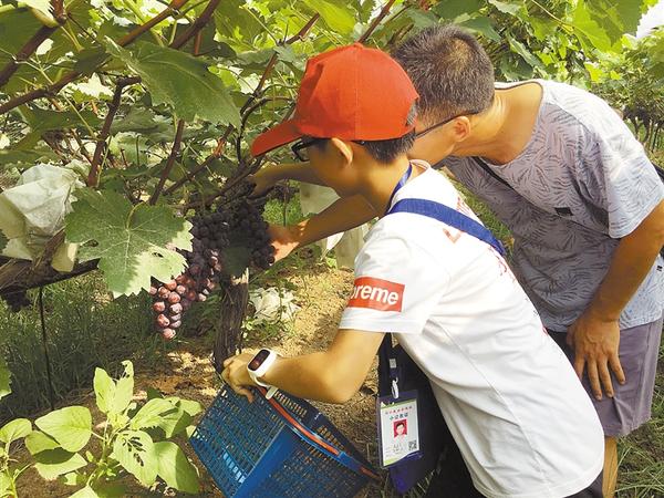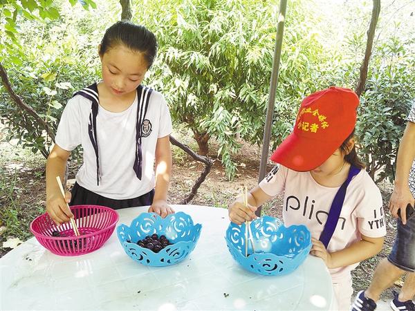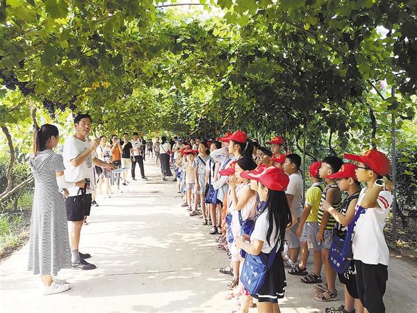 本报讯 如黑珍珠般的葡萄,悬挂在青枝绿叶间,孩子们伸出小手,剪下一串又一串葡萄……8月11日上午,周口报业小记者部组织的40个小记者家庭不畏酷暑高温,来到西华县玉桂生态葡萄园,领略田园风光,体验采摘乐趣。