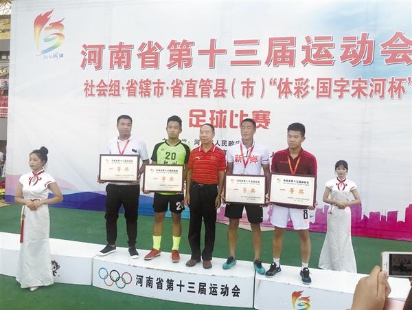 记者在决赛现场看到,洛阳队和新乡队的比赛非常精彩,观众非常多。经过激烈比拼,洛阳队2∶1战胜新乡队获得第一名,新乡队获得第二名。郑州队和开封队的比赛也十分精彩。在上半场比赛中,郑州队2∶0领先开封队。在下半场比赛中,开封队接连踢进3球,当比赛快要结束时,郑州队也踢进1球,双方战成3∶3。在随后的点球大战中,郑州队踢进4球,开封队踢进3球。最终,郑州队7∶6战胜开封队获得第三名,开封队获得第四名。