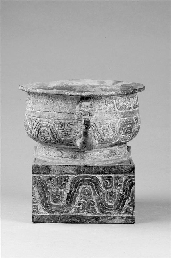 “器仲耴”簋,通高21.3厘米,口径21厘米,底径17.5厘米,重5.17千克。该器物侈口,鼓腹,附双兽无珥,腹下为矮圈足,下连方座。器腹纹饰可分三层,上部饰兽体卷曲纹,两兽耳中间对饰一突起的兽首,下饰两道弦纹;中部饰波曲纹;下部圈足处饰连续式鱼鳞纹,方座平面,四角饰两只相背的鸟纹,四周饰波曲纹,残一耳。器腹内底铭文已被磨平,尚留个别字迹,无法辨认。器盖如圆形覆碗,圈足较高,足心饰螺旋式卷龙纹,外饰连续状波曲纹。器盖内有铭文4行16字“器种耴作宝簋,用祈眉寿子孙永宝用享”。