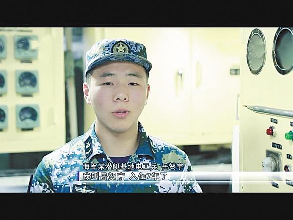2011年,20岁的岳贺宇怀着欣喜和激动的心情走进军营。“离军营不远的地方就是大海。20岁之前我从没见过大海,当海军能在大海里乘风破浪,多威猛。”面对大海,岳贺宇豪情万丈。可现实远不如想象美好,因为是潜艇兵,他需要长期在海底工作,初次接触大海的豫东男孩一下子懵了。