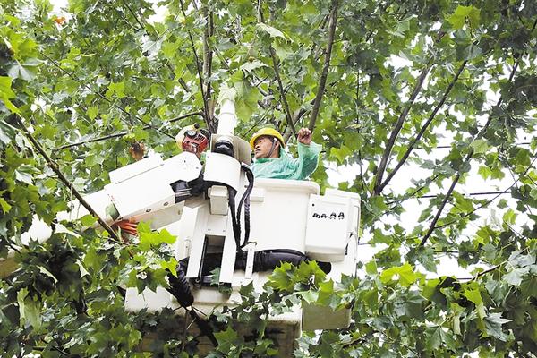 供电抢修人员在芙蓉路抢修线路。记者 窦娜 摄