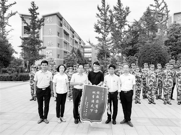 本报讯 “希望你到大学后不忘初心、继续好好学习,将来成为栋梁之才。”8月16日上午,周口市文昌中学校园内,校长朱贵华对前来送锦旗的高三毕业生张毅说。在今年的高考中,刚入学时成绩不太理想的张毅经过努力,被河南大学录取。心怀感激的他特意给母校送了一面锦旗,表达自己对学校、对恩师的感激之情。