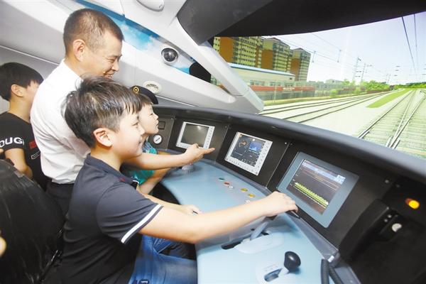 当日,济南机务段邀请驻地小学生参观学习,丰富假期生活。学生们在优秀火车司机带领下参观百年历史的蒸汽机车,体验动车组模拟驾驶,感受中国铁路的高速发展和时代变迁。