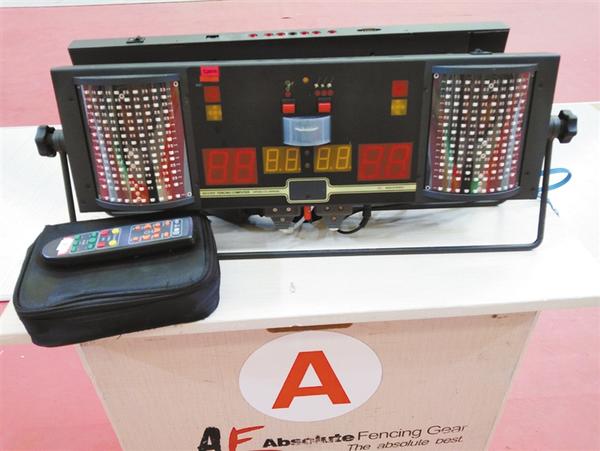 据赛场旁边的工作人员介绍,每个运动员所用的剑顶端都有一个传感器,而在剑柄的位置则有一个插口和运动员服装上的插头相连,而这根电线则和运动员服装后面的一个接口相连。一旦运动员在比赛过程中用剑刺中对手,位于剑顶端的传感器就会通过这根电线和拖线盘,将信息完整地传送到裁判器上,裁判器上就会显示运动员的得分情况。