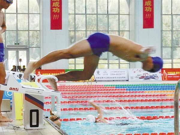 8月24日,男女甲组混合团体接力比赛和男女乙组混合团体接力比赛在市体育中心打响。在击剑赛场,运动员们手执长剑,斗智斗勇,激烈比拼;在游泳赛场,运动员们你追我赶,劈波斩浪(如图);在激光跑赛场,运动员们在烈日下奔跑的同时,还要进行激光枪射击,既考验运动员的速度,也考验运动员的心理素质和稳定性。