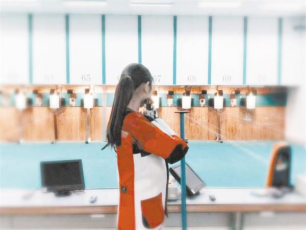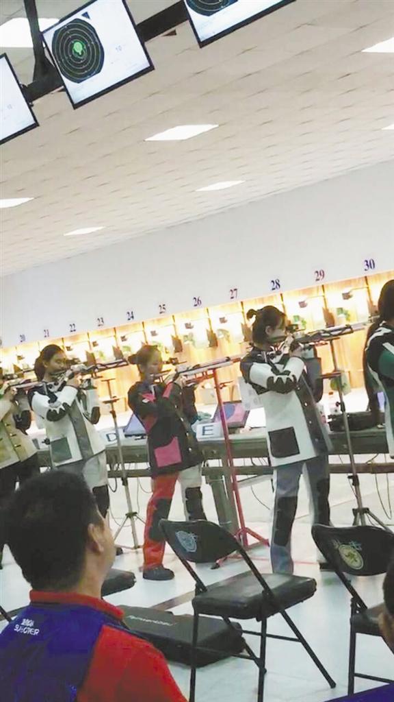 女子50米步枪三姿团体金牌得主、我市选手常思雨在比赛中。