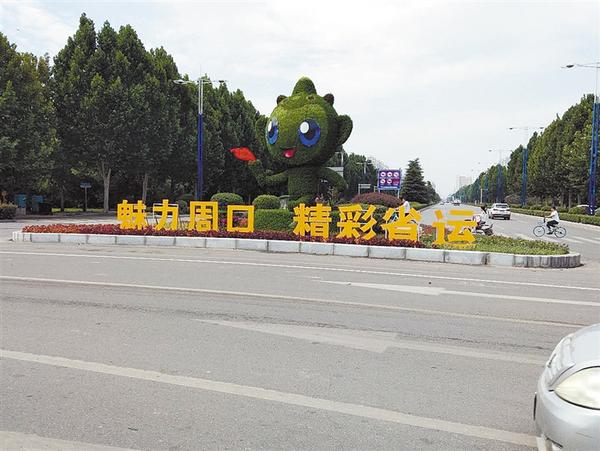 9月3日上午,记者在中心城区文昌大道与周口大道交叉口以及市体育中心门前看到,为了迎接省十三运会盛大开幕,我市特意在这些地方设置了精美的景观造型,给城区增添了一抹靓丽色彩。记者 张洪涛 摄