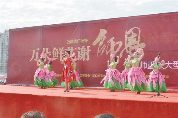 本报讯 三尺讲台系国运,一生秉烛铸民魂。9月7日上午,“万朵鲜花谢师恩”暨周口报业秋季大型车展开幕式现场向一线教育工作者献上爱心和祝福,少先队员们向周口中心城区的近百名优秀教师代表敬礼、献花,以实际行动庆祝第34个教师节。