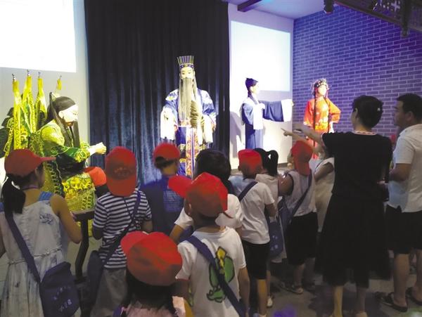 当天上午,一名小记者走进展厅,看到非遗陈列项目——河南越调、太康道情正在声光的配合下进行“演出”,表演优美动听,让其惊叹不已。