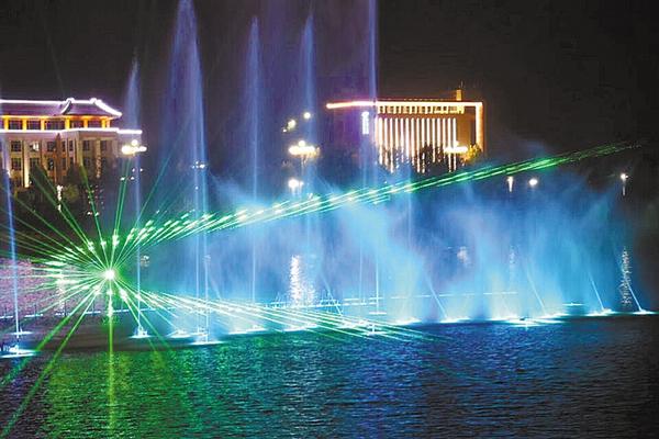 本报讯 9月9日晚,周口和谐公园人工湖面上刚刚建成的灯光水秀进行首次调试表演。伴随着音乐声,整个画面炫酷,场面震撼,让市民享受了一场全方位的声光盛宴(如图),为省运会增添无限光彩。周口和谐公园的灯光水秀采用了哪些高科技手段、又有哪些亮点呢?9月10日,记者对此进行了采访。