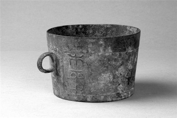 该器物铜质,高10.8厘米,口径15.9厘米,底径13.9厘米,重1040克。体呈圆筒状,上略大于底,素面直口,矮圈足,口下有鋬,一侧有一铭文“市平斗”3字,通体铜绿色,是一件铸有铭文的汉代计量标准器具,反映了汉代的计量方式。