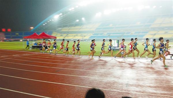 本报讯 9月18日,周口选手崔凯在省十三运会青少年竞技组田径比赛青年男子10000米决赛中获得铜牌,冠军被商丘选手王光耀夺得。