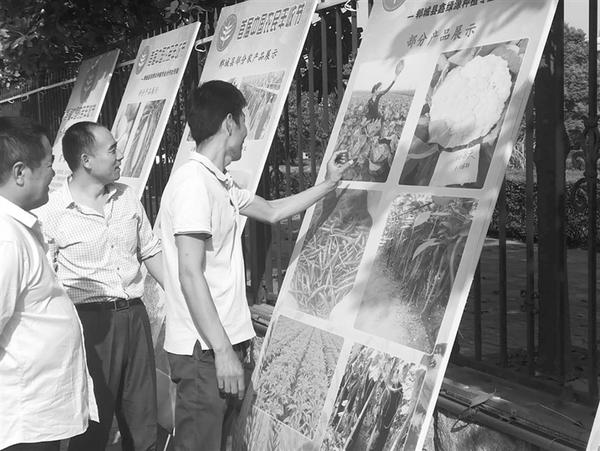 记者在现场看到,许多市民来到培康合作社展板前,看到170斤重的大南瓜图片时,发出阵阵惊叹。在郸城县秋香园种植专业合作社展板前,当市民了解到有机菜心每天创造产值15万多元时,纷纷称赞(如图)。
