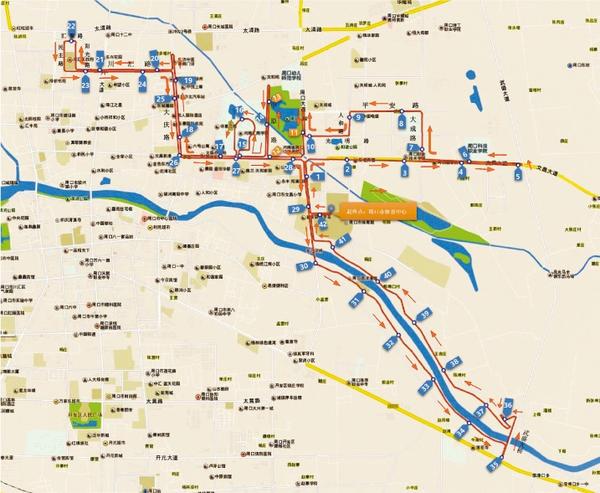 周口市体育中心西门起点→兴旺路→周口大道→文昌大道至大成路口折返→政通路向北50米终点。